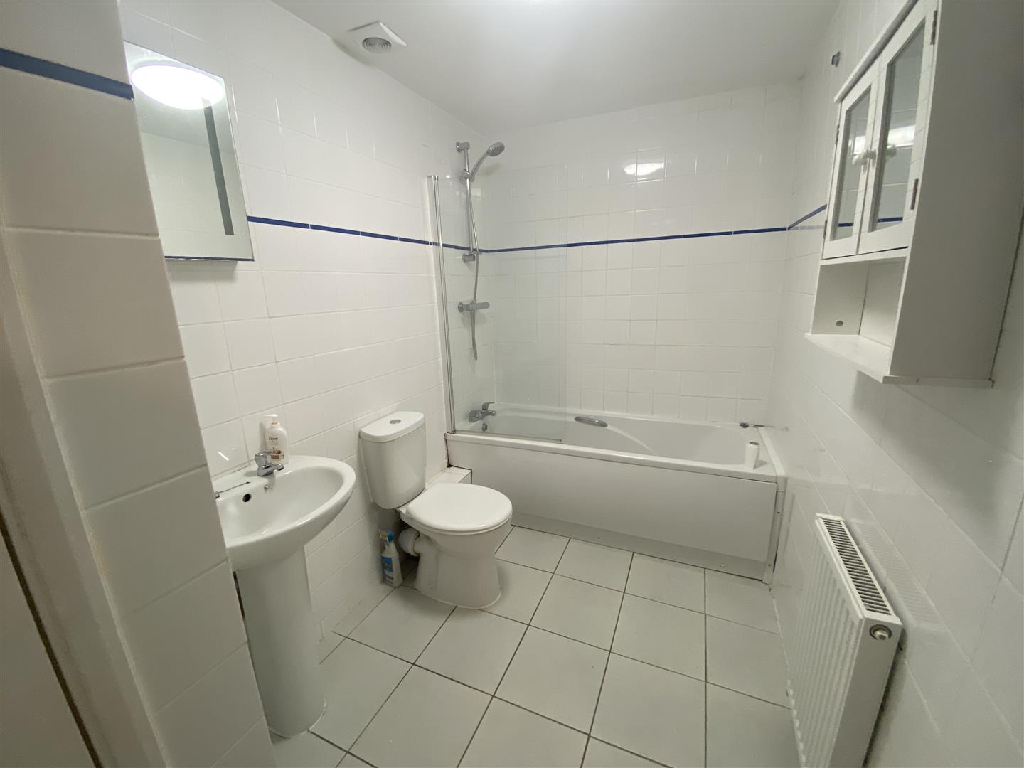 - Family bathroom with shower over the bath.