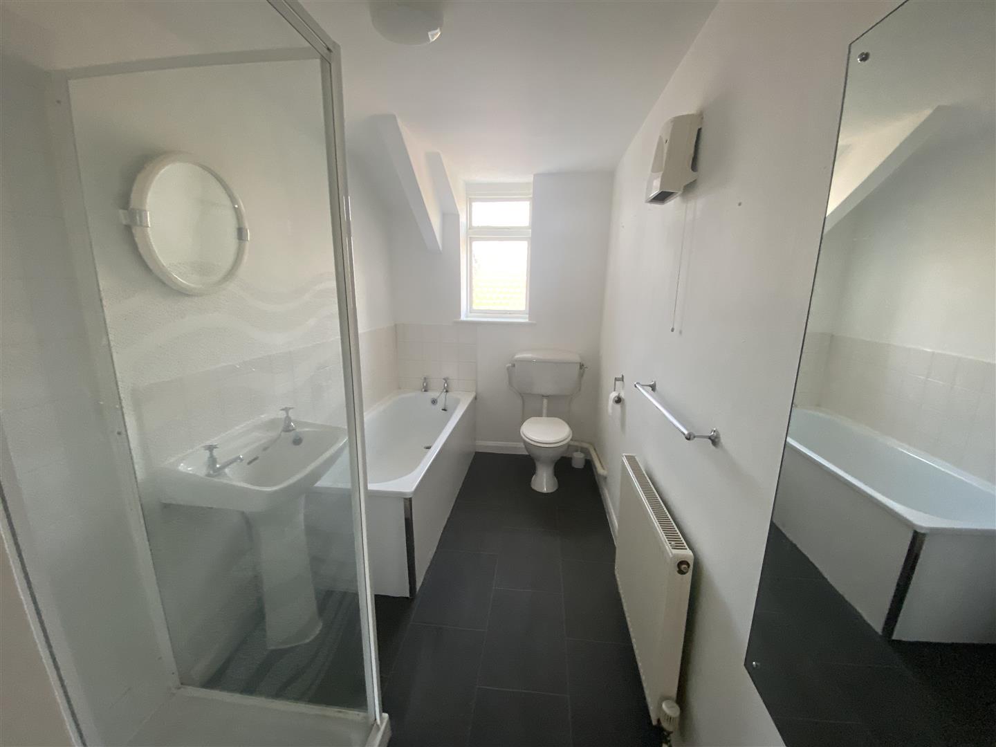Family bathroom with bath and separate shower.